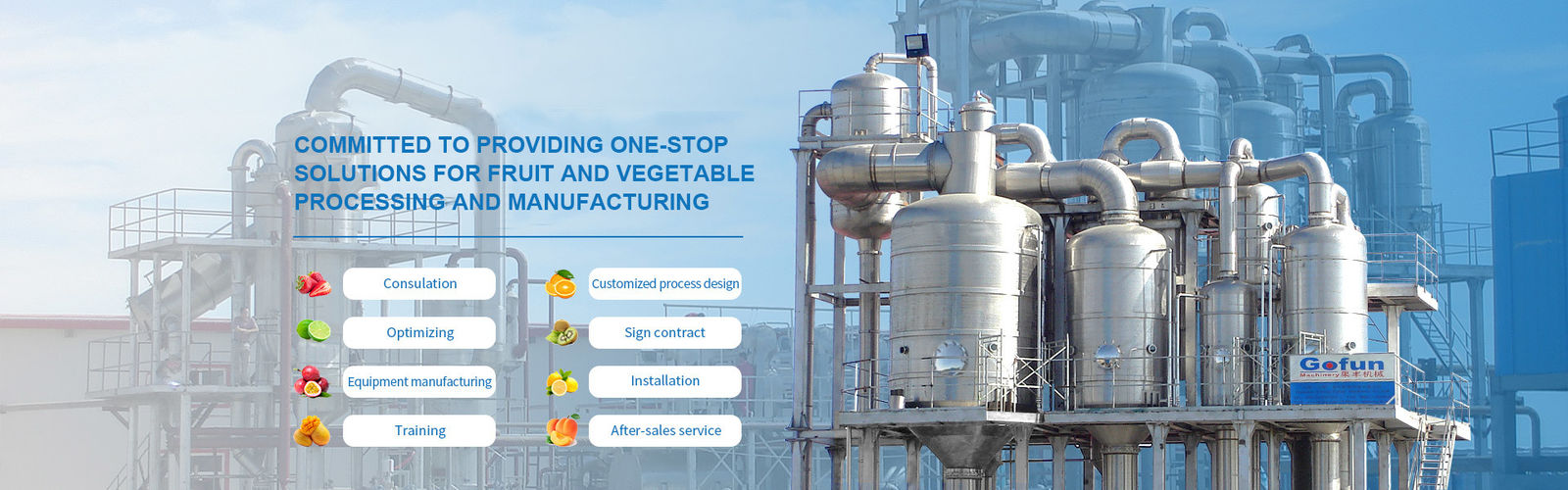 Shanghai Gofun machinery company, a professional fruit and vegetable processing line manufacturer and exporter in China. Which can offer the turn-key solution for different fruit juice, pulp & paste processing complete line with high quality and competitive production lines with daily capacity from 60 tons to 1500 tons. We can provide the one-stop solution from A to Z, including plant construction, equipment manufacturing, installation, commissioning, and production; provide the most optimized ...
